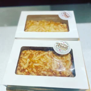 This cake uses a nut free flour and is also available dairy free. The dairy free option is even more coconut tasting and delicious.