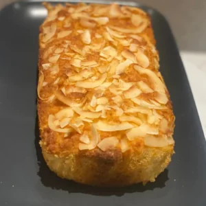 Coconut Butter Loaf Cake awesomely divine with desiccated coconut inside the cake among ingredients.