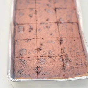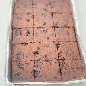 Almond flour, Eggs, sweetener, cocoa powder, melted butter, for dairy option or coconut oil/ olive oil for dairy free option, vanilla extract, Sugar free dark Chocolate chips, Grass-fed gelatin, Baking powder